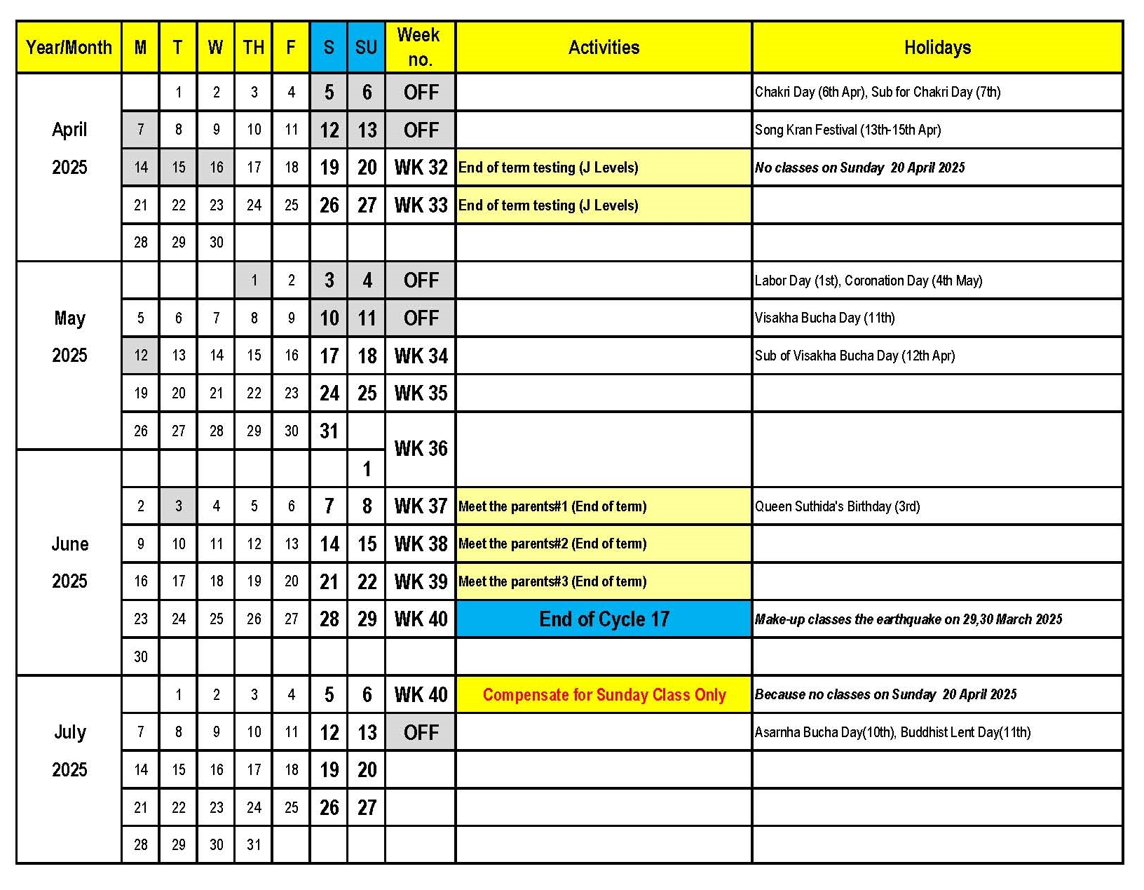 Follow weekend school facebook at https://www.facebook.com/weekendschool.sis